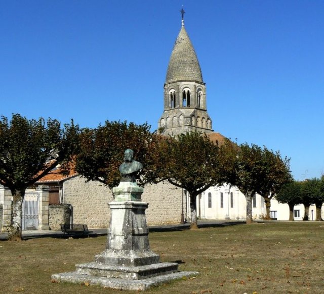 Sur l’herbe, près de l’église de Montbron, en plein air.